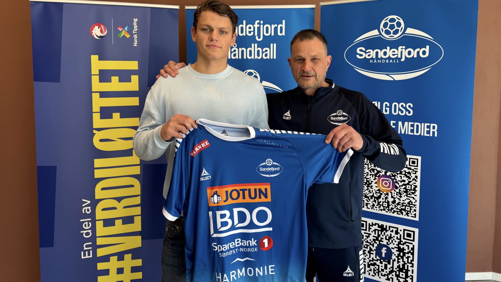 Og jeg vet at Christoffer gleder seg. Han synes det er både stort og stas, at han skal få spille for den mest tradisjonsrike og veldrevne klubben i håndballbyen Sandefjord. Og så synes jeg han er heldig som får lov til å utvikle seg videre på banen med så erfarne og gode trenere som Marinko og Fredrik, sier han.